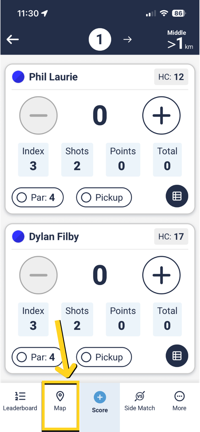 Select the 'Map' icon at the bottom, next to 'Score'.