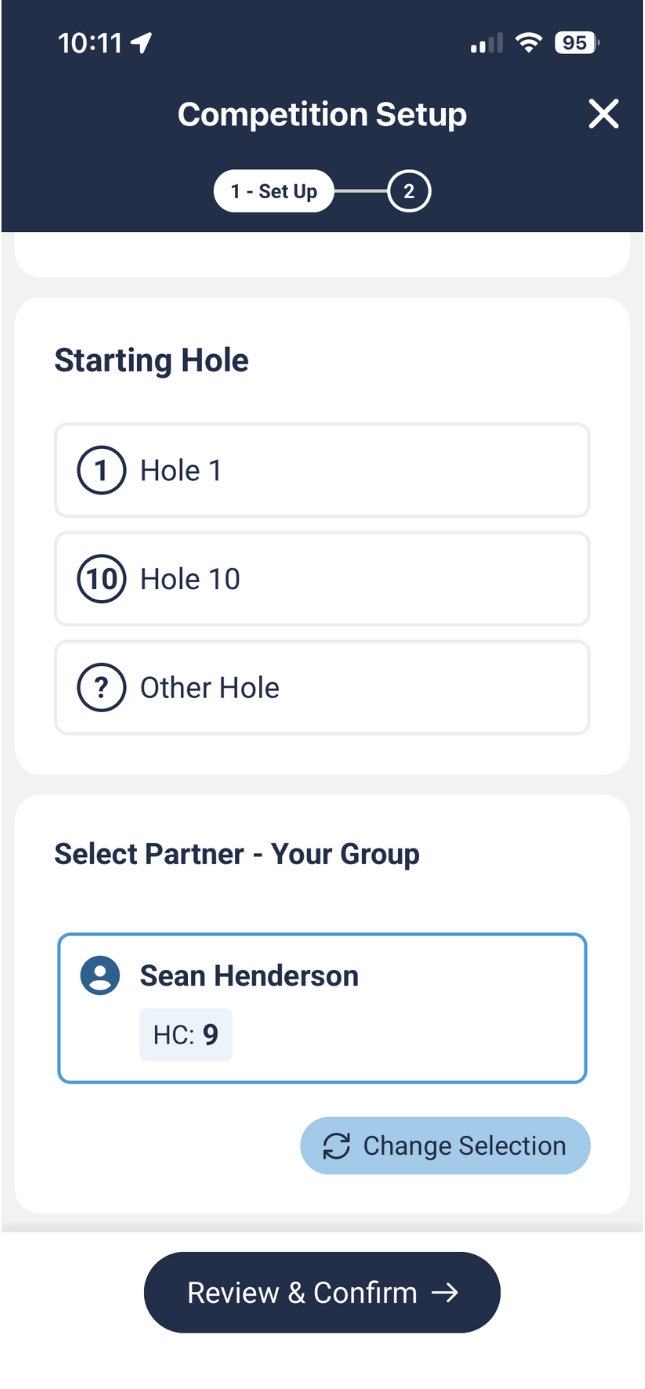 - Select the pair scoring & Start Hole