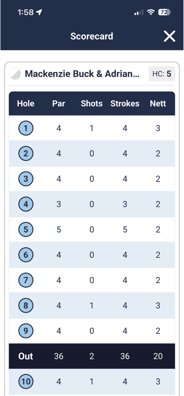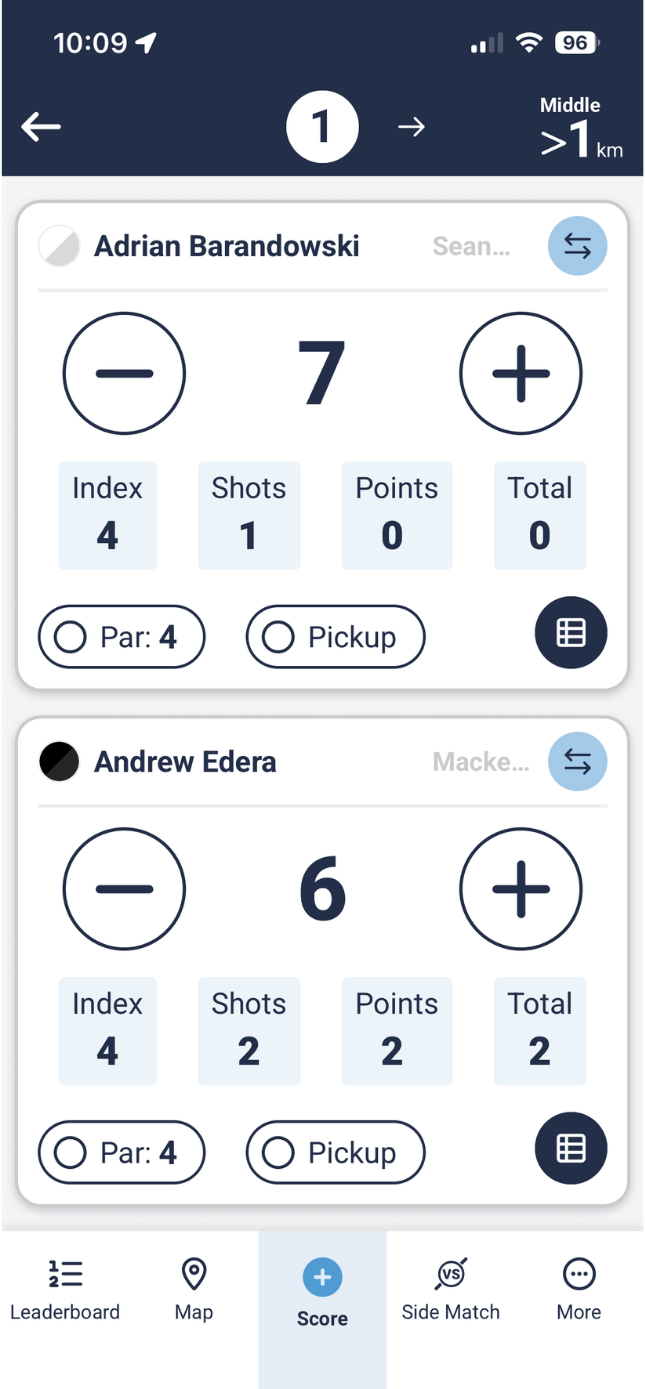- Enter the gross score each hole for both pairs
