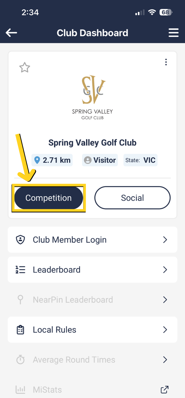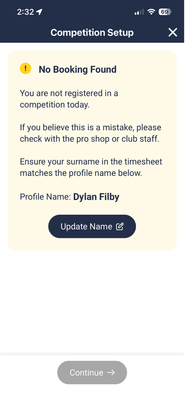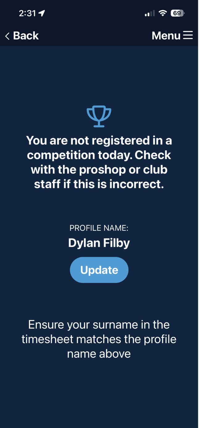 3. As long as you are registered in a comp on the day, you should see your name appear along with the tee time and Golflink number.