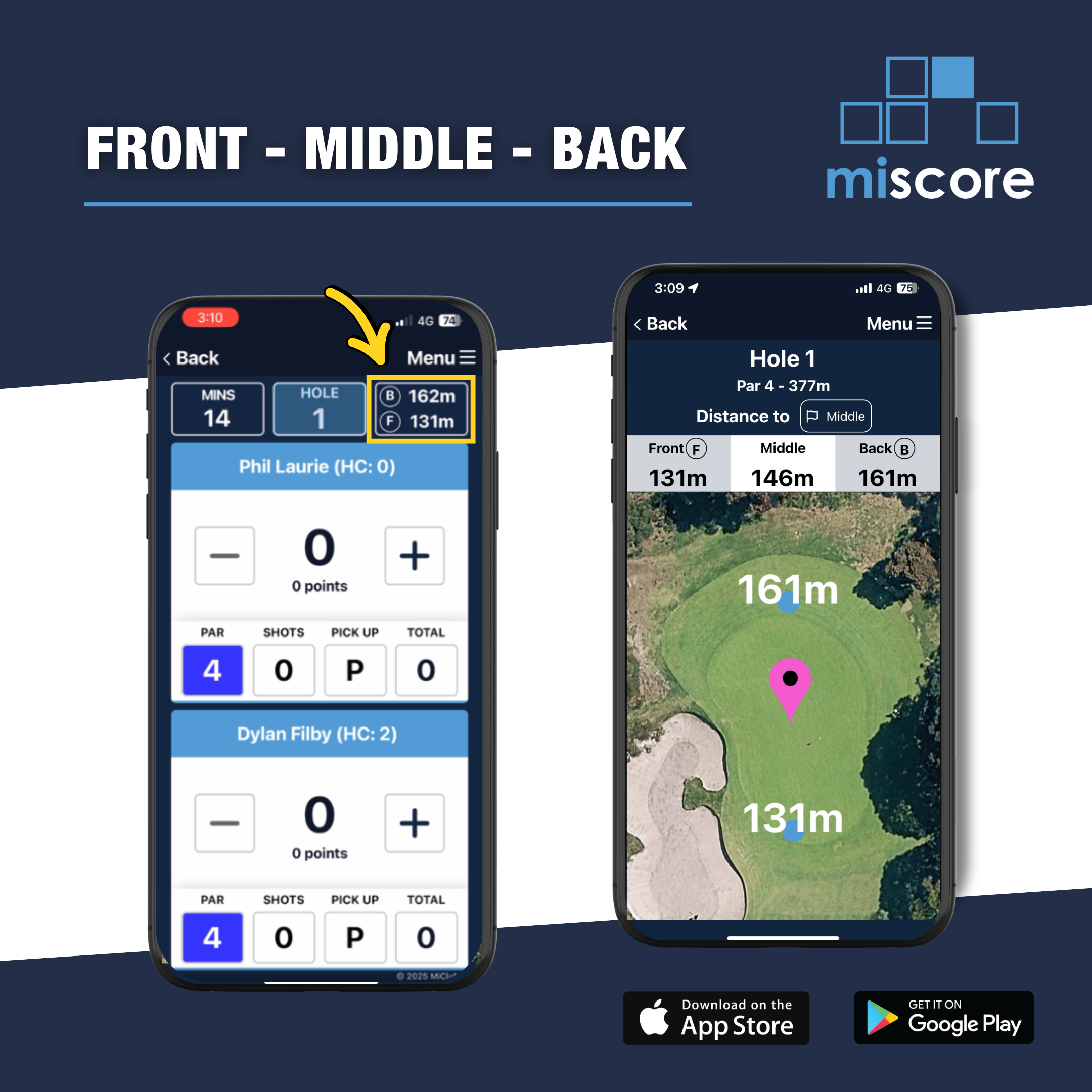 Introducing the new Front, Middle & Back distance options now available in the MiScore App.